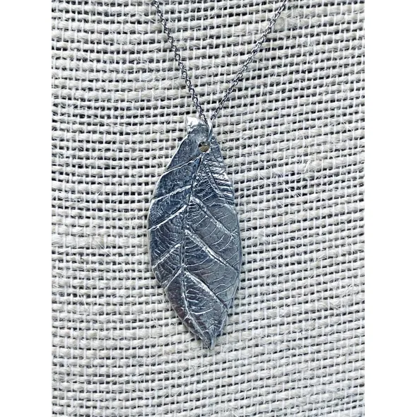 Lovingly-hand crafted and made from an imprint from a leaf, this solid silver leaf pendant comes with 18 inch sterling silver chain.